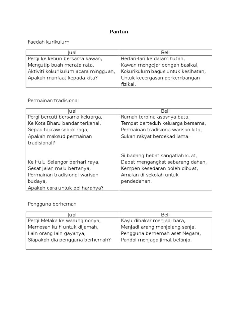 Apr 16 2018 Puisi rakyat puisi lama merupakan jenis puisi yang terikat oleh berbagai ketentuan seperti banyaknya larik setiap bait banyaknya suku kata setiap larik ataupun pola rimanya. Baris kedua berisikan jawabannya atau akibat dari masalah atau perjanjian pada baris pertama tadi. Di bawah ini yang termasuk jenis pantun berdasarkan baris adalah.