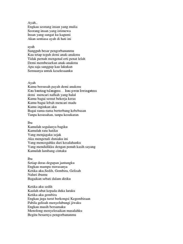 Dari bentangan langit yang semu Ia kemarau itu datang kepadamu Tumbuh perlahan berhembus amat Panjang. PUISI IBU DAN AYAH SINGKAT. Tentang ibu tentang sekolah tentang cinta tentang guru tentang alam dll Puisi 3 Bait.