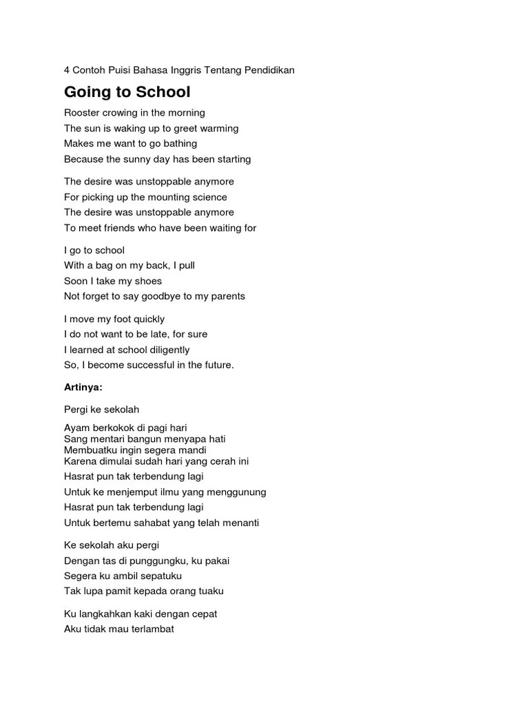 Puisi Pendidikan Bahasa Inggris Dan Artinya
