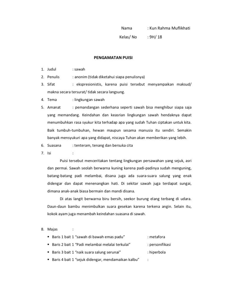 Sejuk menjadi gersang hijau menjadi hitam arang asri hanyalah bayang. Puisi terbagi menjadi dua yaitu puisi lama dan puisi modern. Tema puisi adalah lingkungan b nada perasaan penyair.